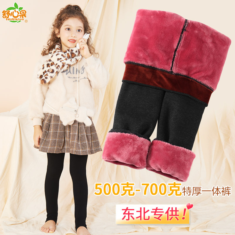 北方特厚加绒护腰女童踩脚保暖一体裤子